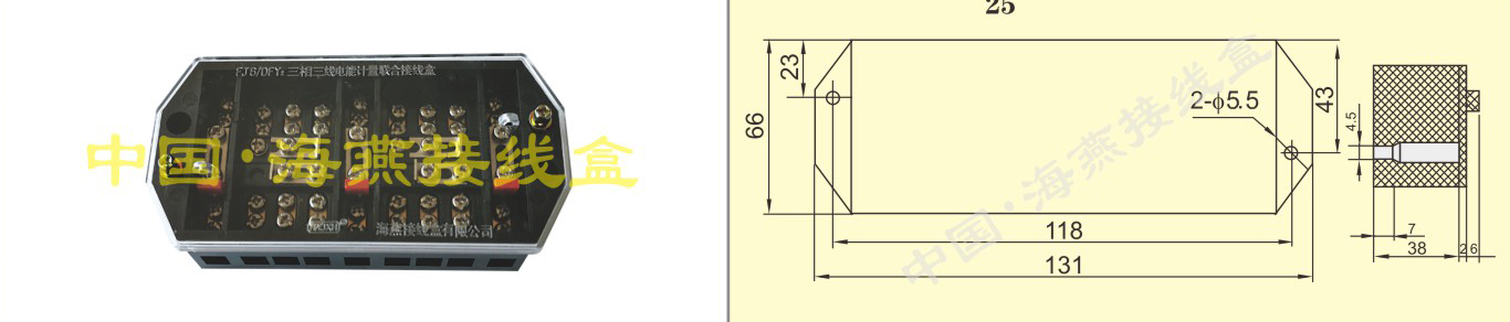 英文名稱:(Bakelite injection)Three-phase three-wire energy measuring terminal block