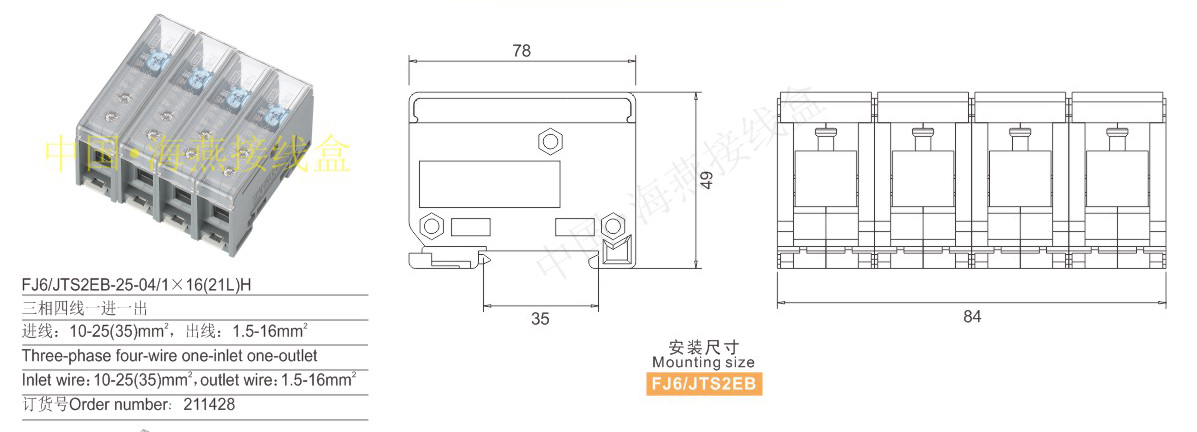 FJ6/JTS2EB-25-04/1×16(21L)H多用途端子(三相四線)