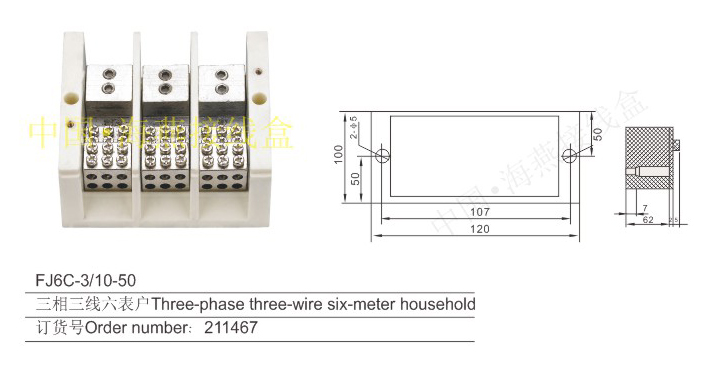 英文名稱:Three-phase three-wire series heavy current terminal blocks for measuring box (hole insertion type)