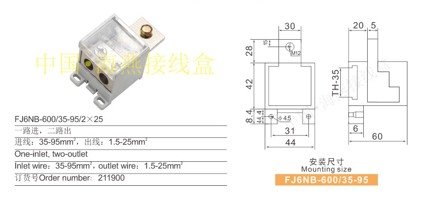 FJ6NB-600/35-95/2×25獨(dú)立式零線端子(接鼻式)
