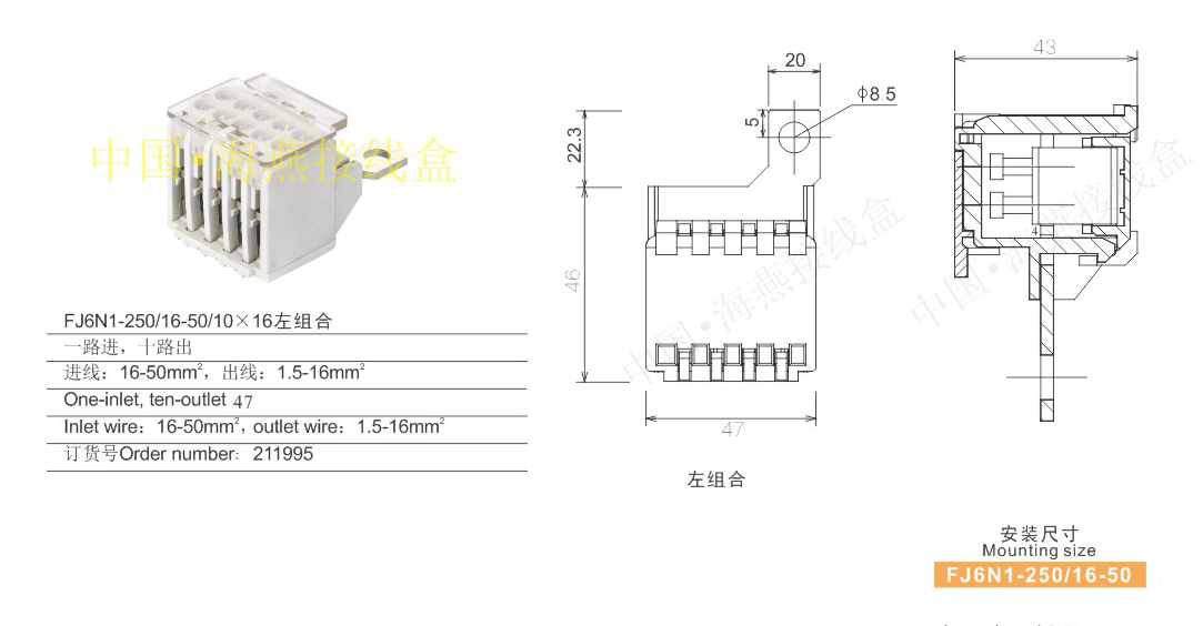 產(chǎn)品分類:FJ6N1-250/16- 50系列零線開關(guān)端子279-282